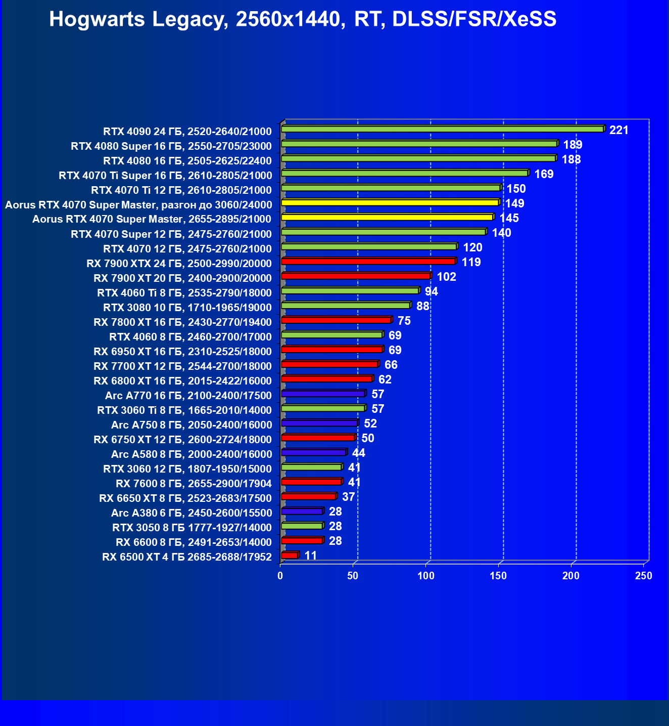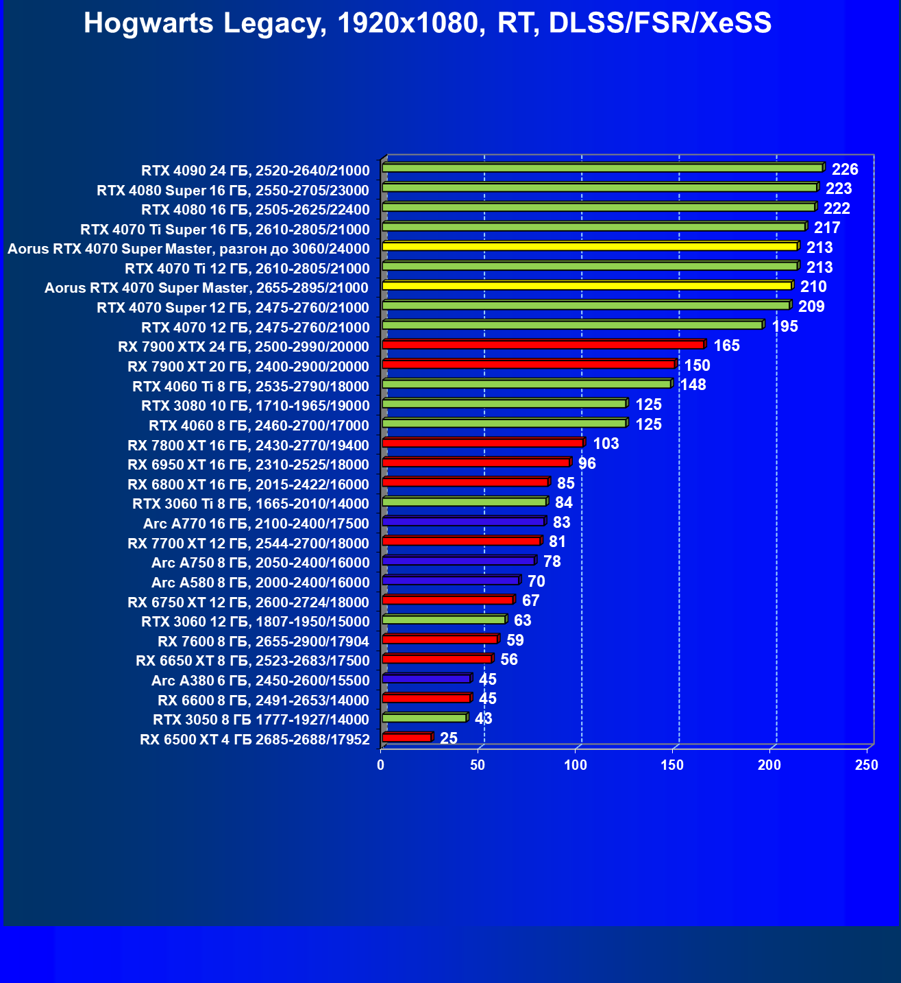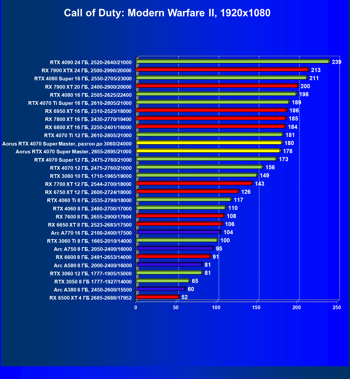 | 09 | Aorus RTX 4070 Super Master, 2655—2895/21000 | 214 | 1754 | 82 000 |