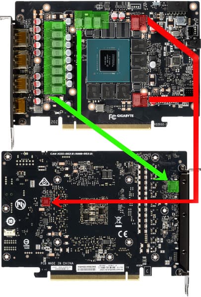 Питание на карту Gigabyte подается через 16-контактный разъем питания стандарта PCIe 5.0.