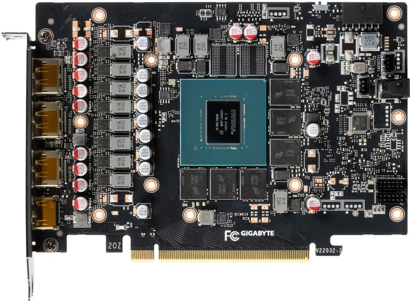 Карта имеет 12 ГБ памяти GDDR6X SDRAM, размещенной в 6 микросхемах по 16 Гбит на лицевой стороне PCB. Микросхемы памяти Micron (MT61K512M32KPA-21/D8BZC) рассчитаны на номинальную частоту работы в 2625 (21000) МГц.