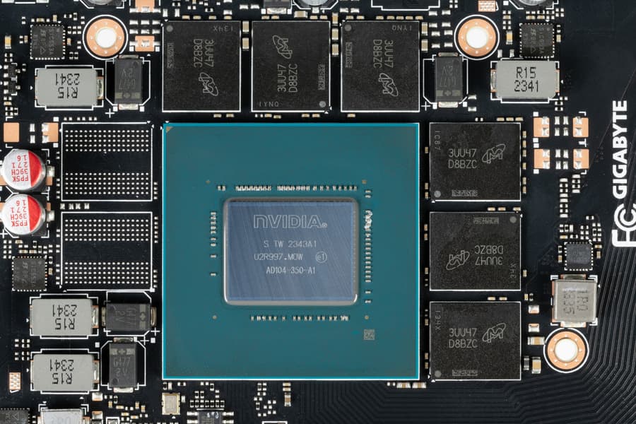 Ядро имеет маркировку AD104-350 (у полноценного чипа, используемого в GeForce RTX 4070 Ti, маркировка заканчивается на -400/401), дата выпуска — 43-я неделя 2023 года.