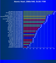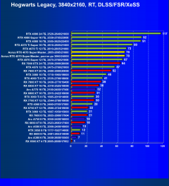 Результаты тестов со включенной аппаратной трассировкой лучей и/или DLSS/FSR/XeSS в разрешениях 1920×1080, 2560×1440 и 3840×2160