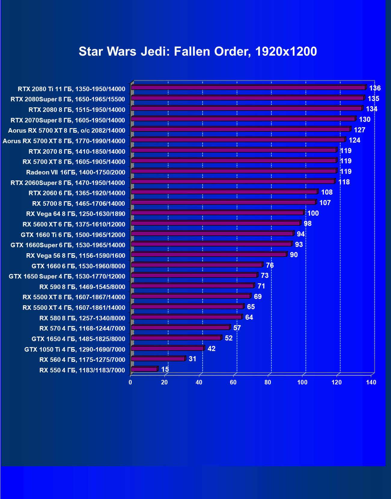 | 08 | RX 5700 XT 8 ГБ, 1605—1905/14000 | 1090 | 419 | 26 000 |
