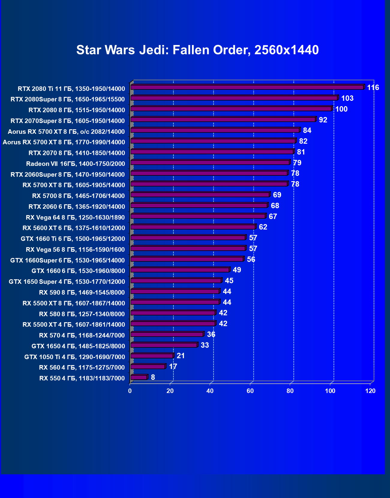 | 05 | Aorus RX 5700 XT 8 ГБ, разгон до 2082/14000 | 1160 | 386 | 30 000 |
