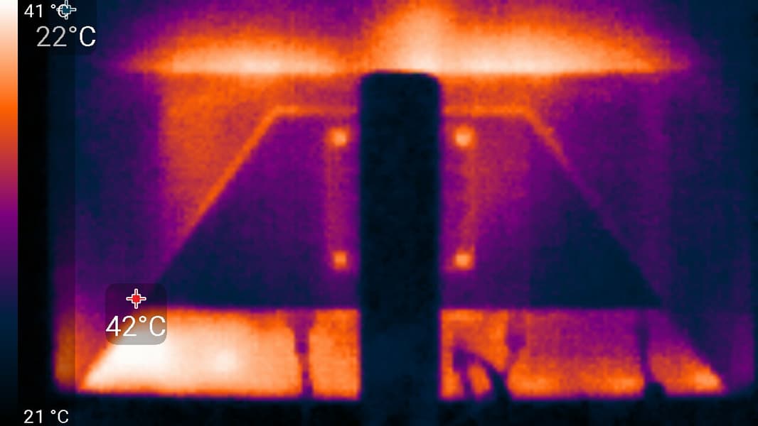 Нагрев монитора можно оценить по приведенным снимкам с ИК-камеры, полученным после долговременной работы монитора на максимальной яркости в помещении с температурой примерно 24 °C: