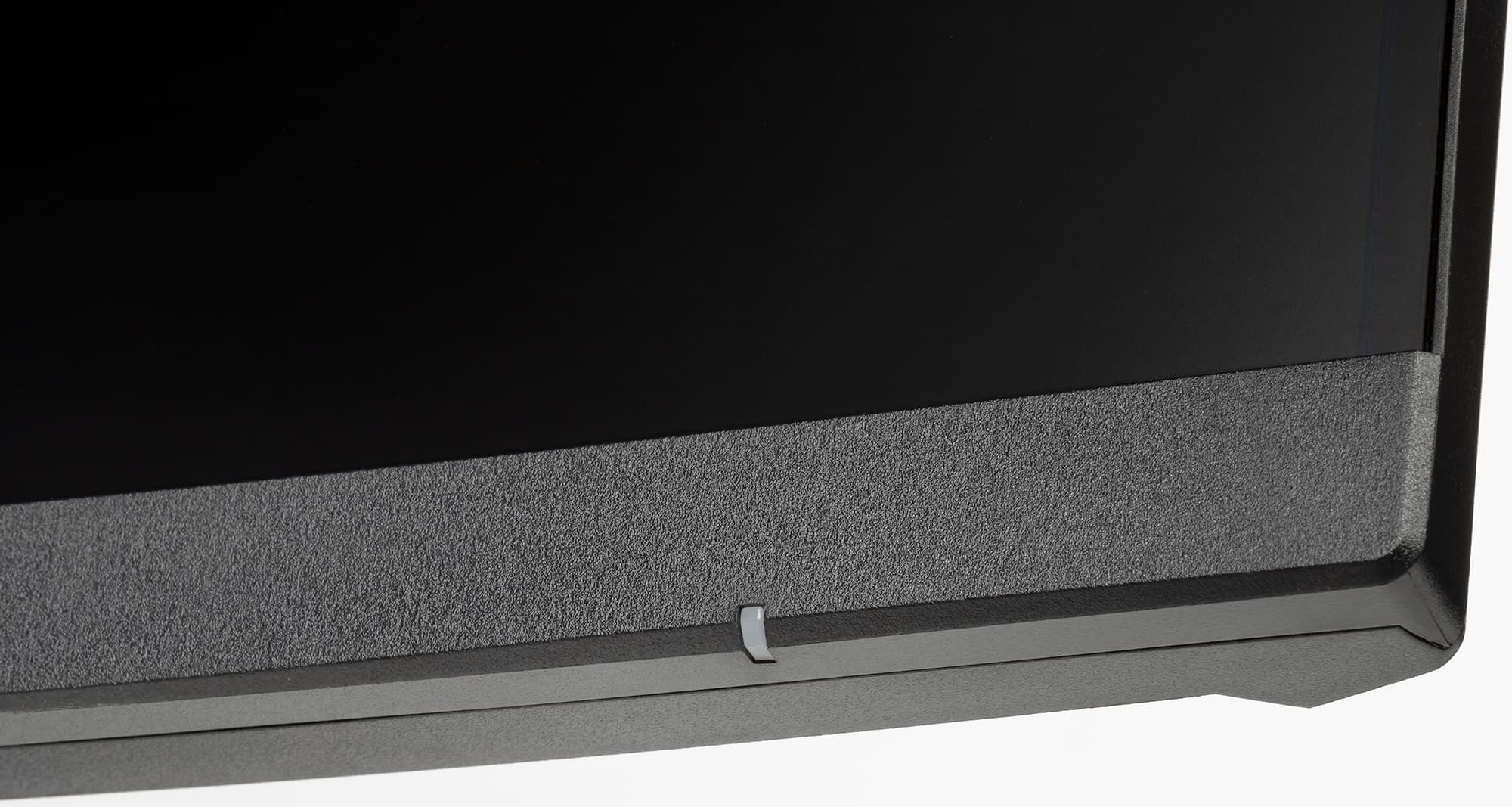 Плоскость экрана изогнута по цилиндру так, что правый и левый край немного выдвинуты вперед. Заявленный радиус изгиба равен 1,5 м. Равномерность кривизны экрана у данной модели хорошая, правда в вертикальной полосе шириной порядка 10 см у правого и левого края экран практически плоский, но это характерно для всех изогнутых ЖК-экранов. Внешняя поверхность матрицы черная, полуматовая, жесткая. Экран выглядит как монолитная поверхность, ограниченная снизу относительно узкой планкой, а сверху и по бокам — узкой окантовкой. Выведя изображение на экран, можно увидеть, что на самом деле между внешними границами экрана и собственно областью отображения есть неширокие поля — по 8 мм до внешних краев сверху и по бокам и 1,5 мм до планки снизу. .