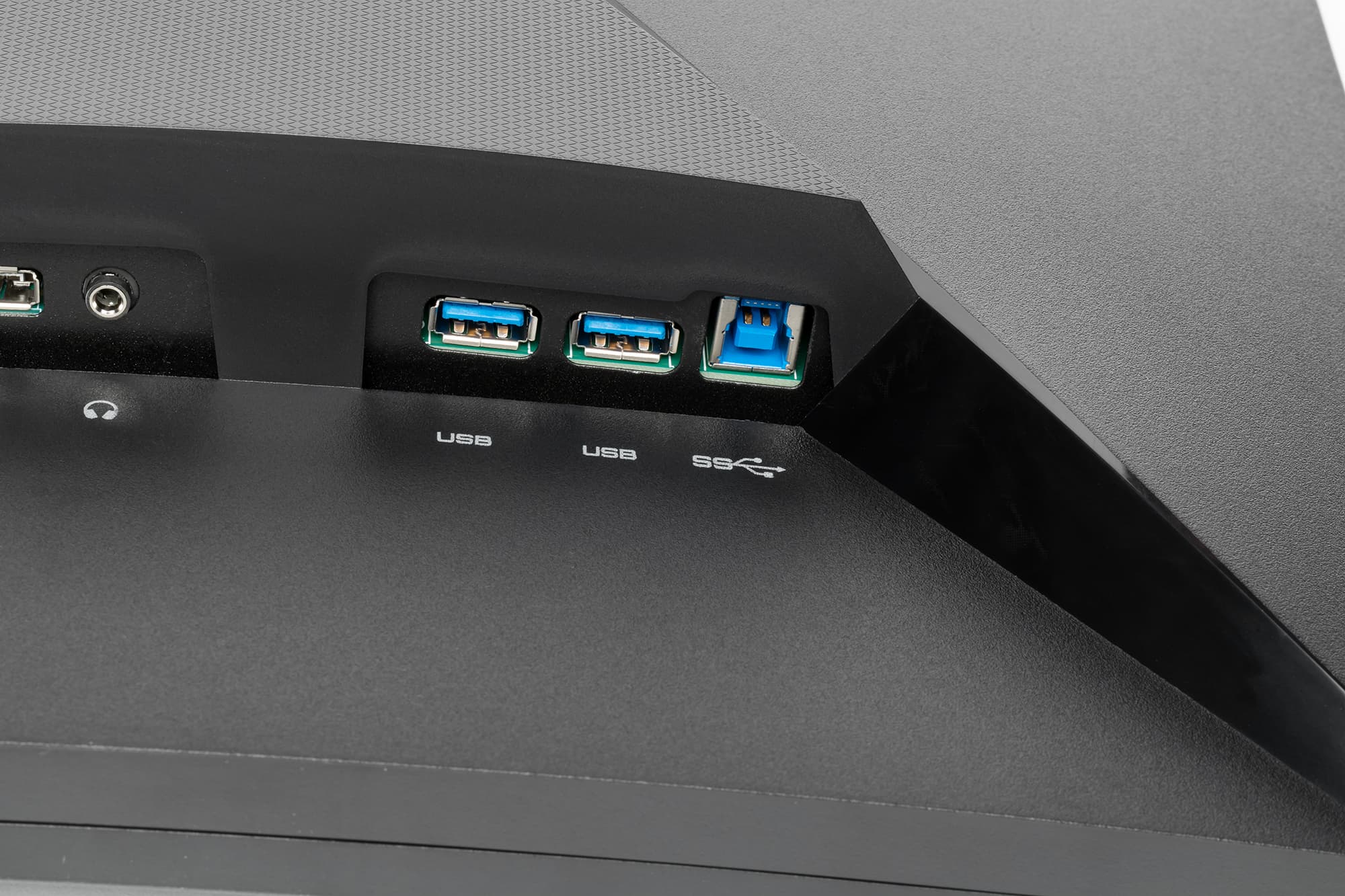 Монитор оснащен тремя цифровыми входами в полноразмерном варианте: DisplayPort и пара HDMI. Выбор входа осуществляется в основном меню установок или в меню быстрого доступа (если оно так настроено). Есть отключаемая функция автоматического поиска сигнала на входах. Цифровые аудиосигналы, передаваемые на входы DisplayPort и HDMI, после преобразования в аналоговый вид выводятся на встроенные громкоговорители и через гнездо миниджек 3,5 мм. К этому гнезду можно подключить внешнюю активную акустическую систему или наушники.
