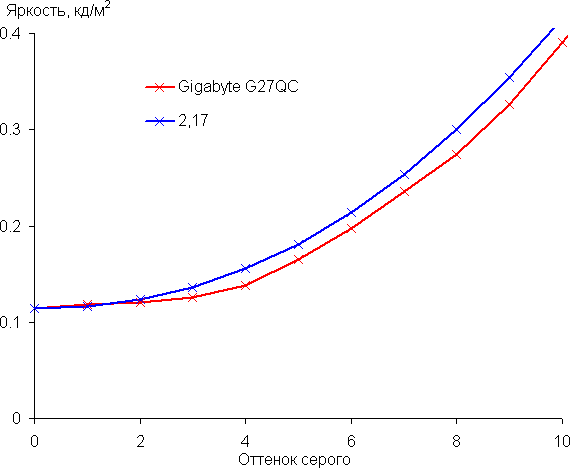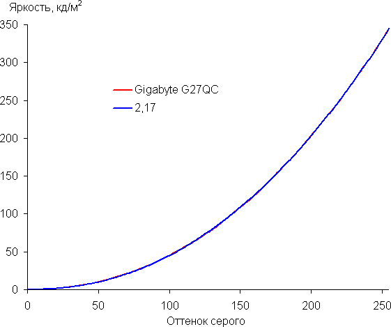 Аппроксимация полученной гамма-кривой дала показатель 2,17, что близко к стандартному значению 2,2, при этом реальная гамма-кривая почти не отклоняется от аппроксимирующей степенной функции:
