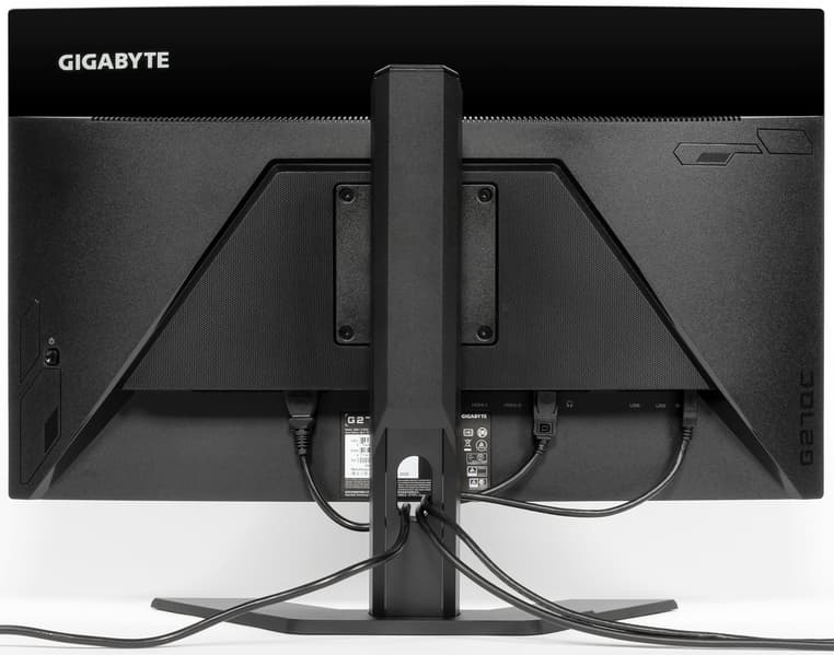 Дизайн монитора Gigabyte G27QC можно считать универсальным, так как он имеет умеренное количество декоративных элементов, обозначающих его игровое предназначение. Этот монитор отличается изогнутой поверхностью экрана с относительно небольшим радиусом кривизны, что частично компенсирует неширокие углы обзора, и набором игровых функций, часть из которых работает совместно со специальным ПО.