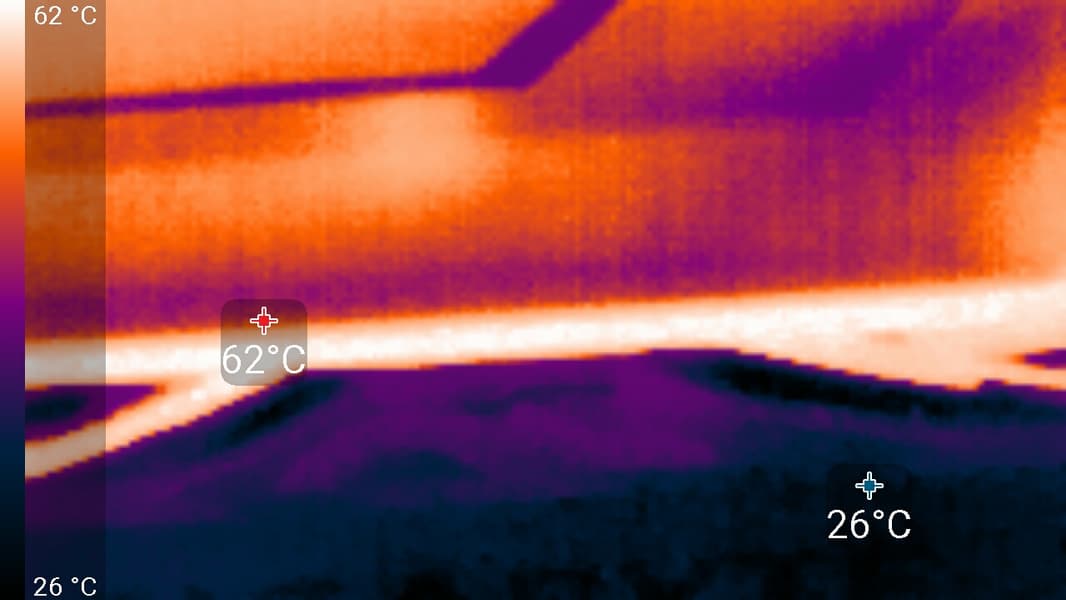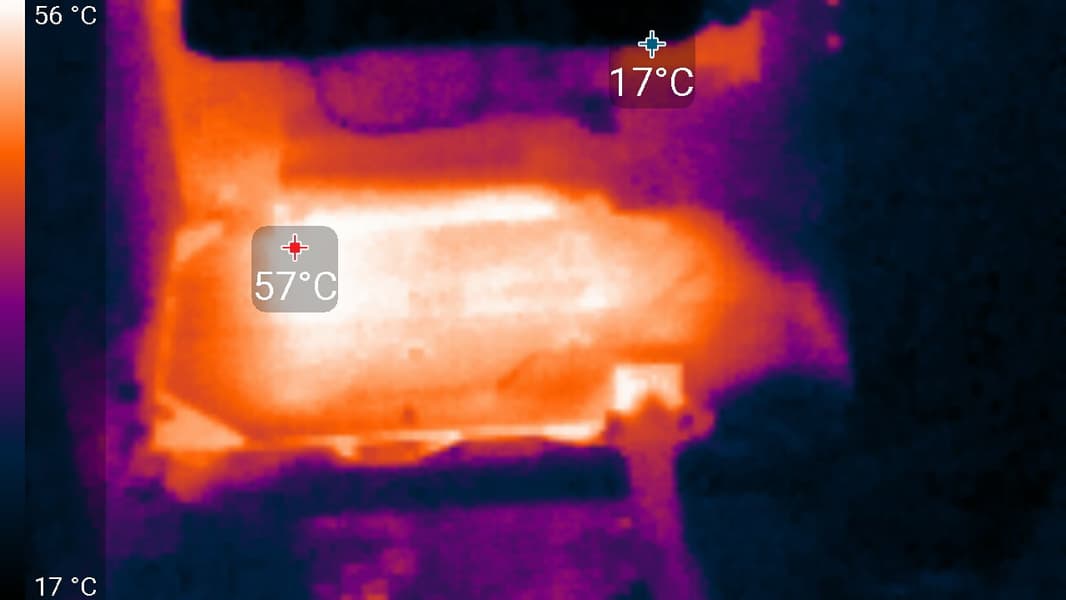 Максимальный нагрев наблюдался в районе преобразователей питания GPU.