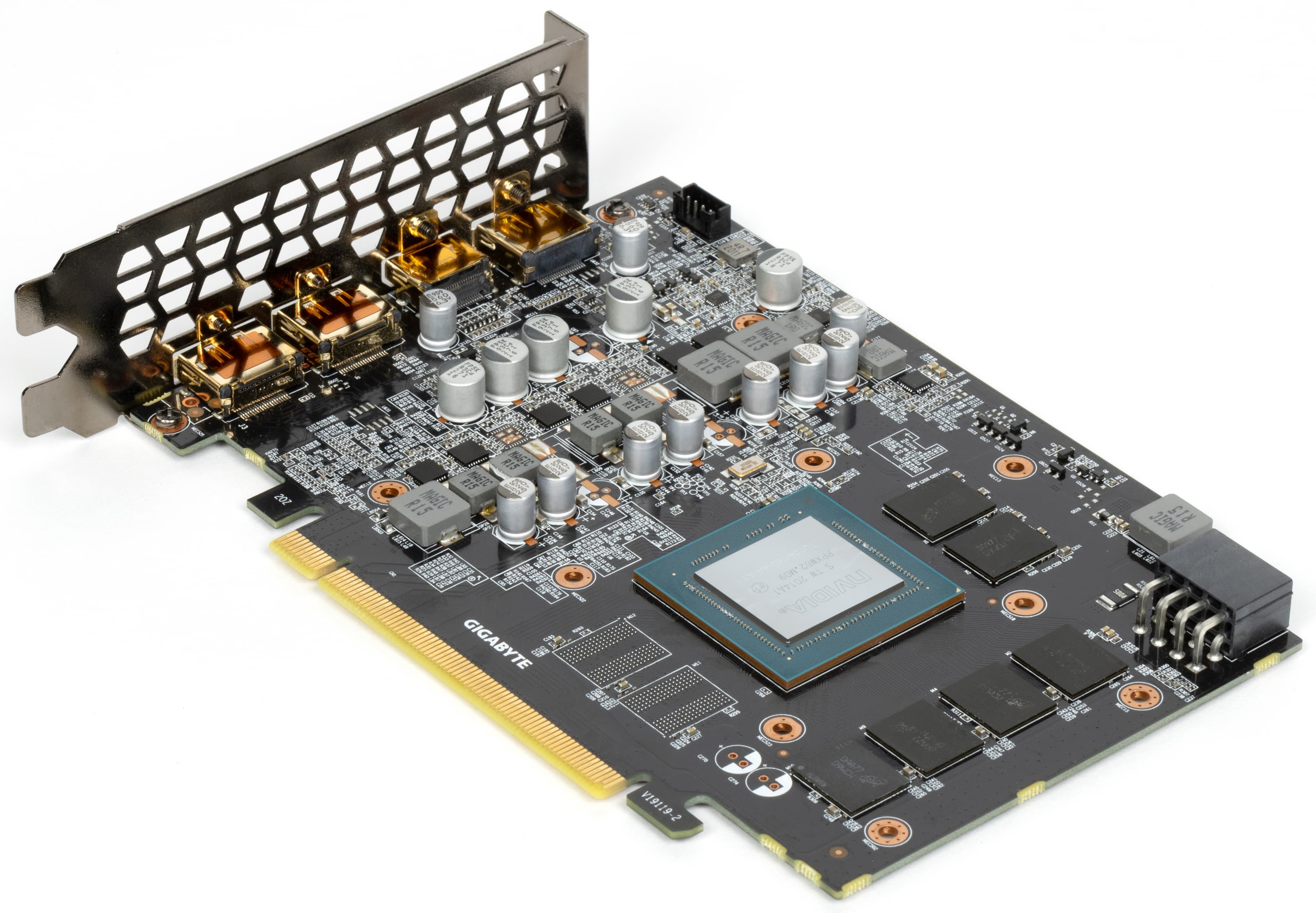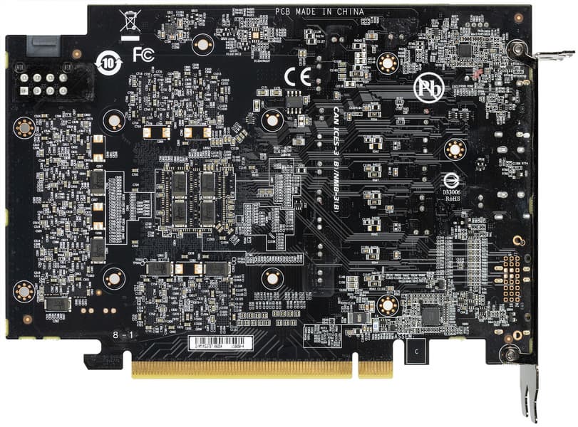 Карта имеет 6 ГБ памяти GDDR6 SDRAM, набранной 6 микросхемами Micron. Эффективная частота — 14 ГГц, ширина шины до GPU — 192 бита.
