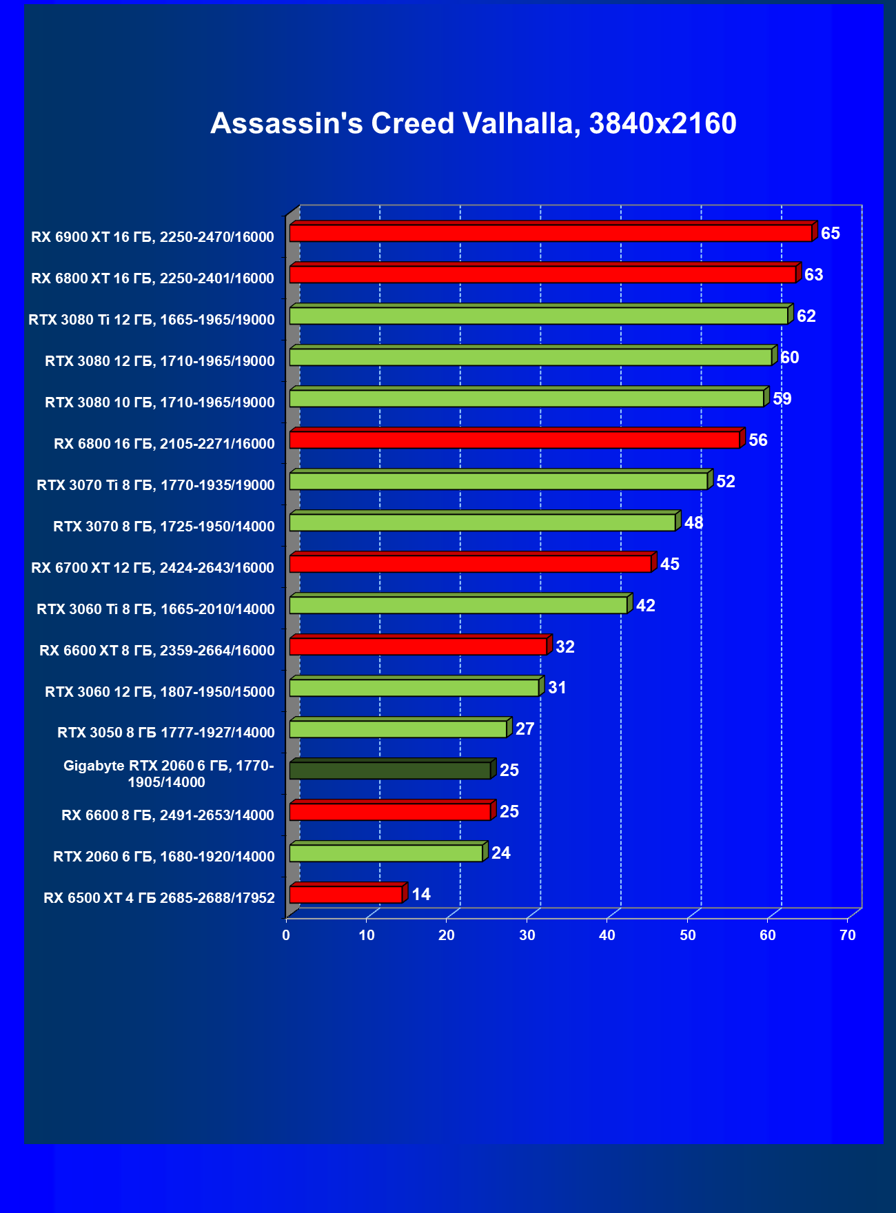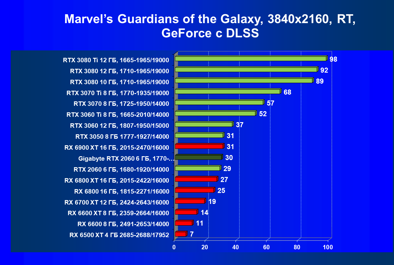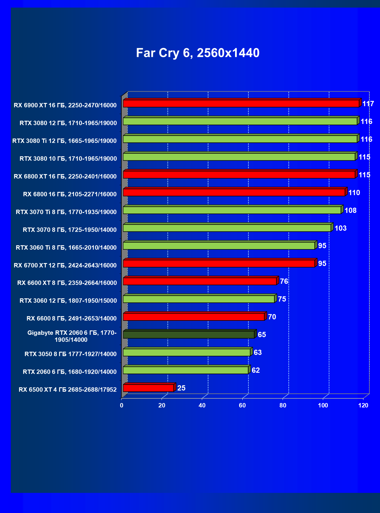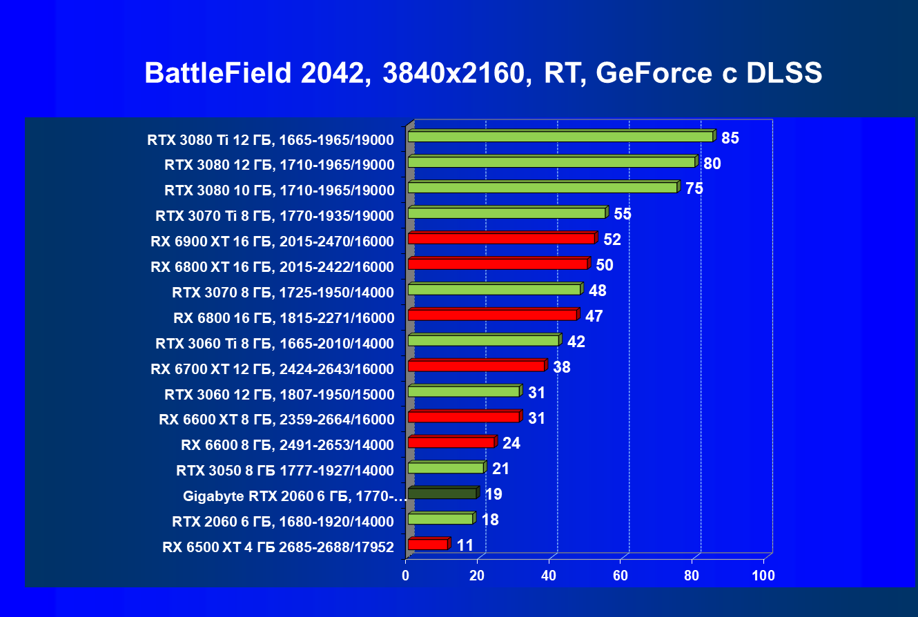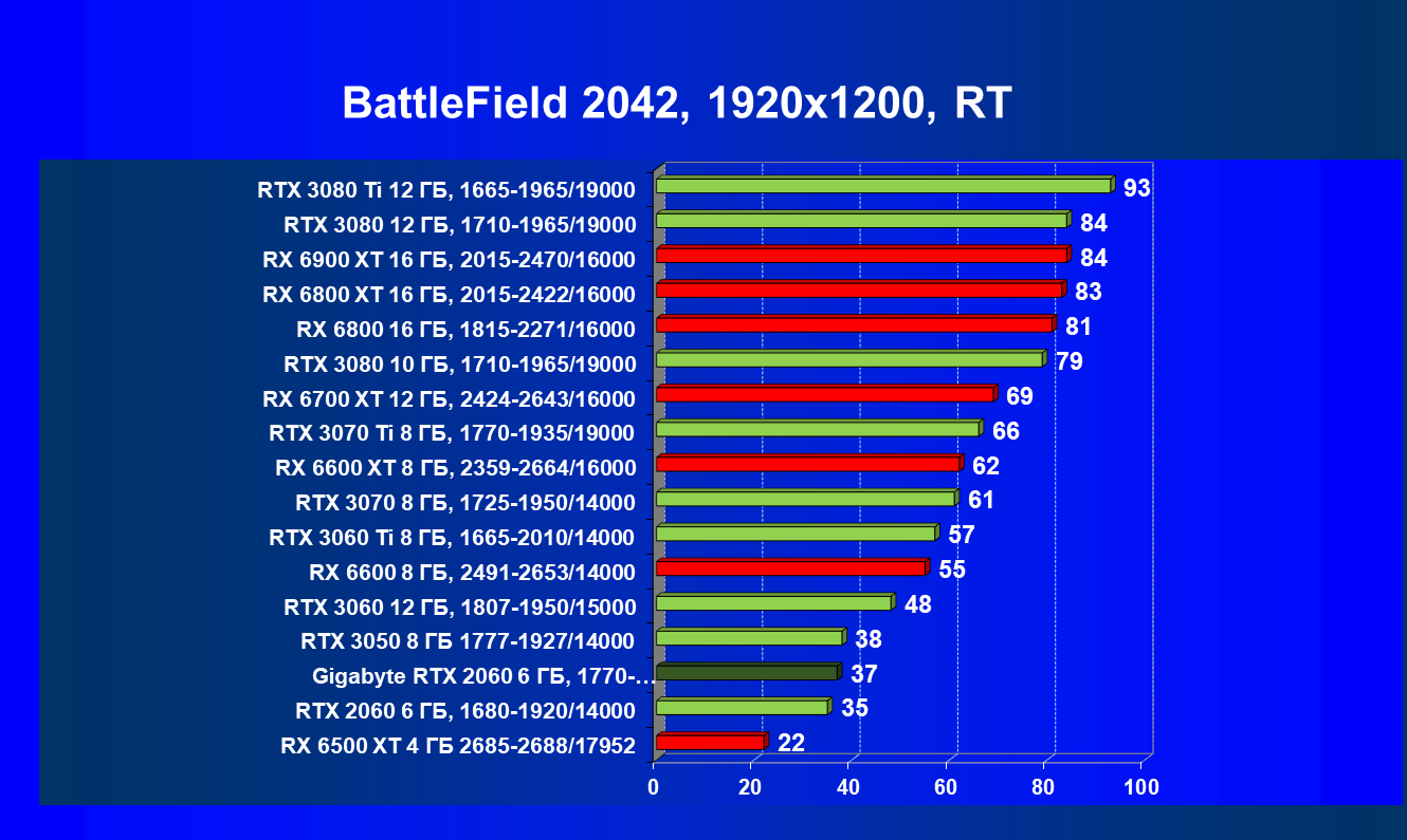 | 13 | RX 6600 (8 ГБ), 2491—2653/14000 | 180 | 31 | 59 000 |