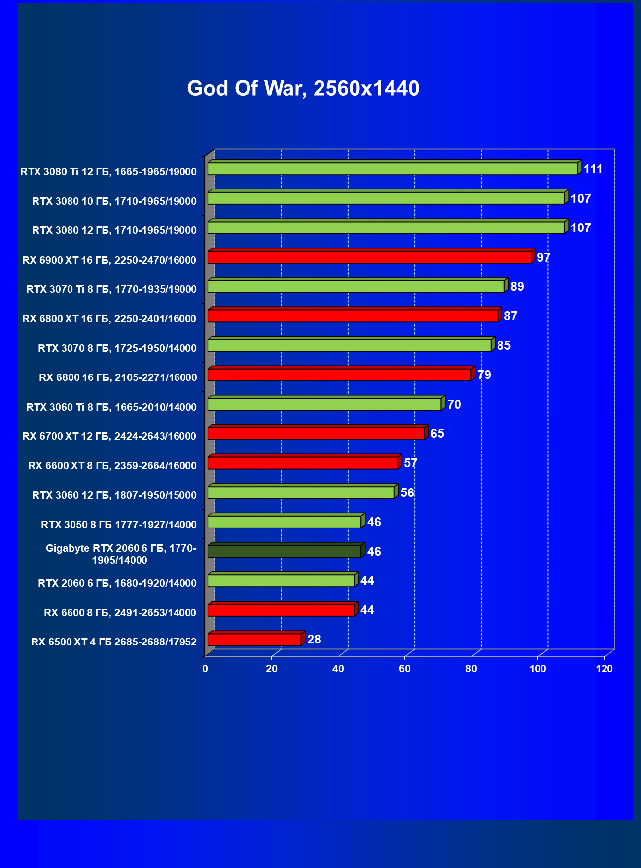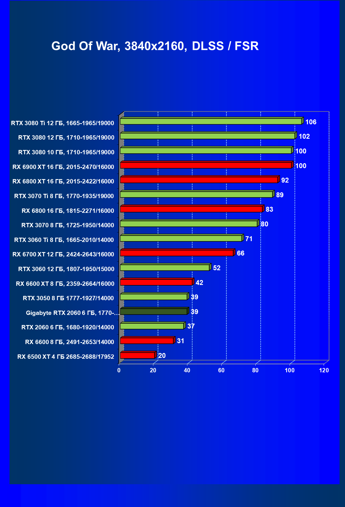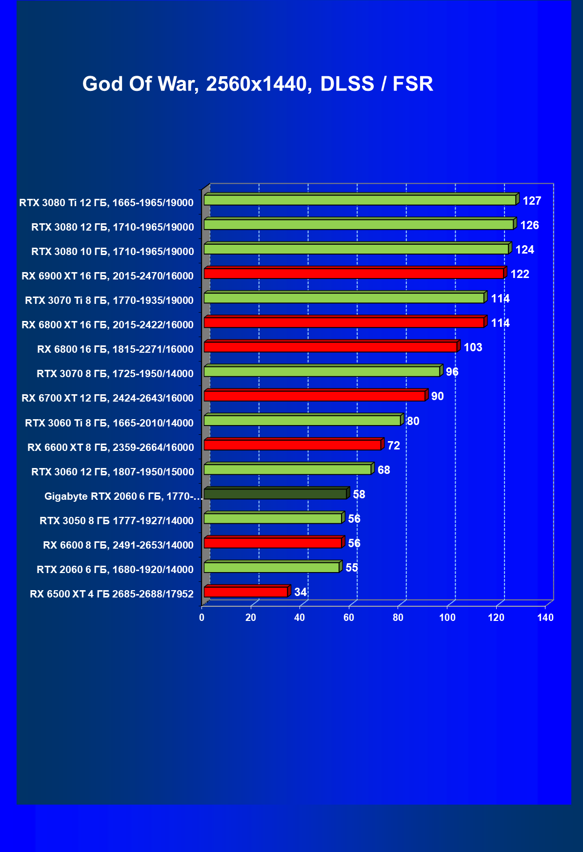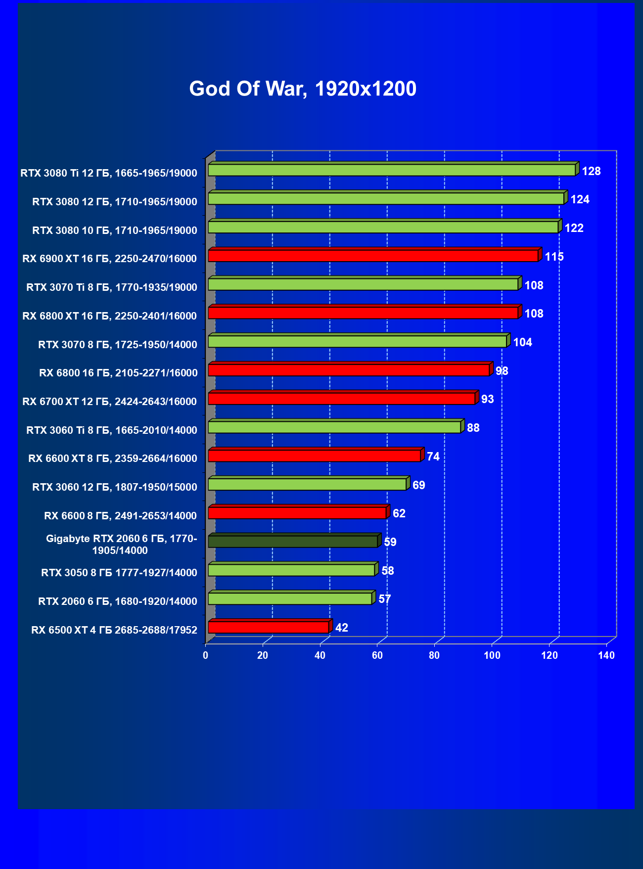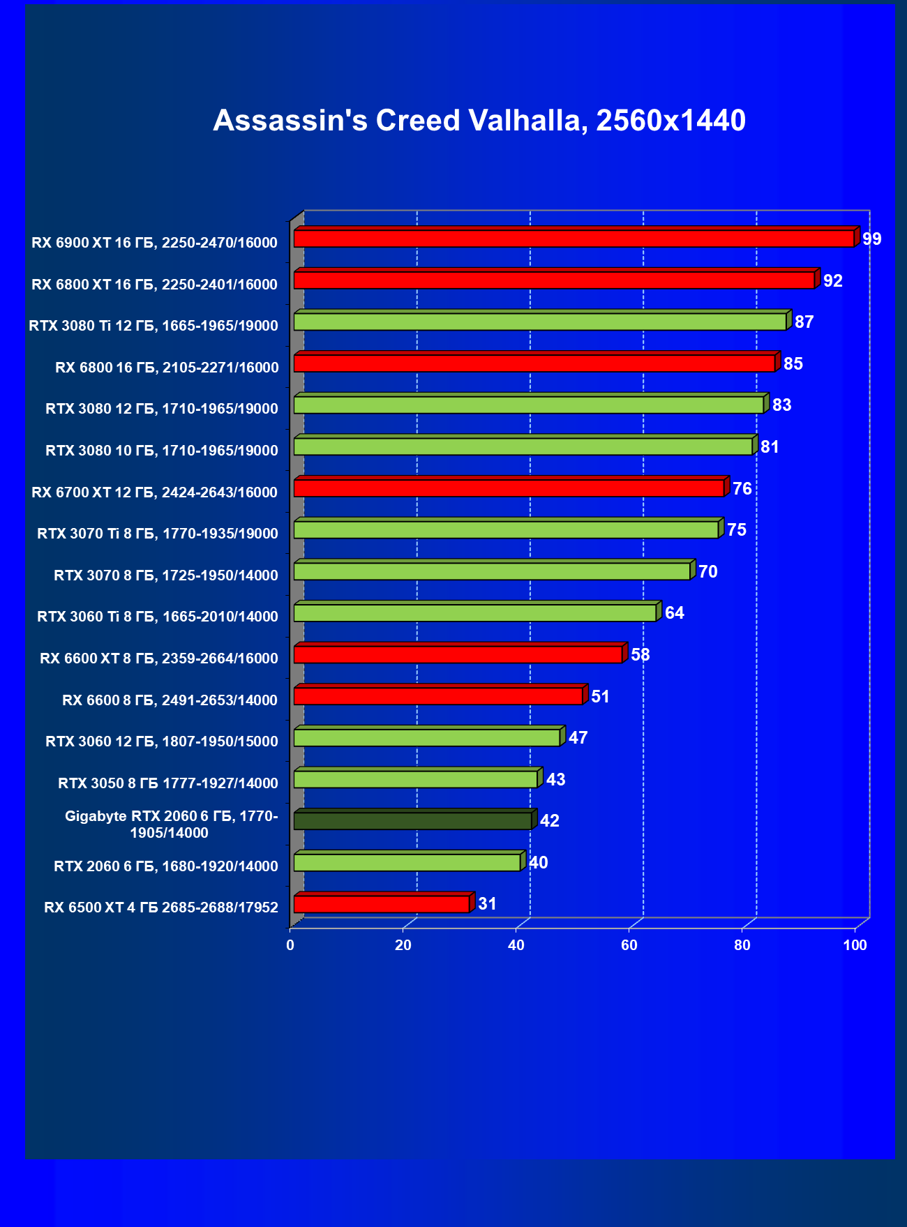 | 13 | RX 6600 (8 ГБ), 2491—2653/14000 | 180 | 31 | 59 000 |