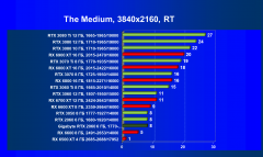 Рейтинг составлен по 9 тестам с применением технологии трассировки лучей. Этот рейтинг нормирован по Radeon 6500 XT (то есть сочетание скорости и функций Radeon 6500 XT приняты за 100%).
