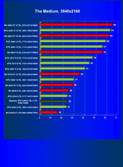 | 16 | RX 6600 (8 ГБ), 2491—2653/14000 | 240 | 41 | 59 000 |