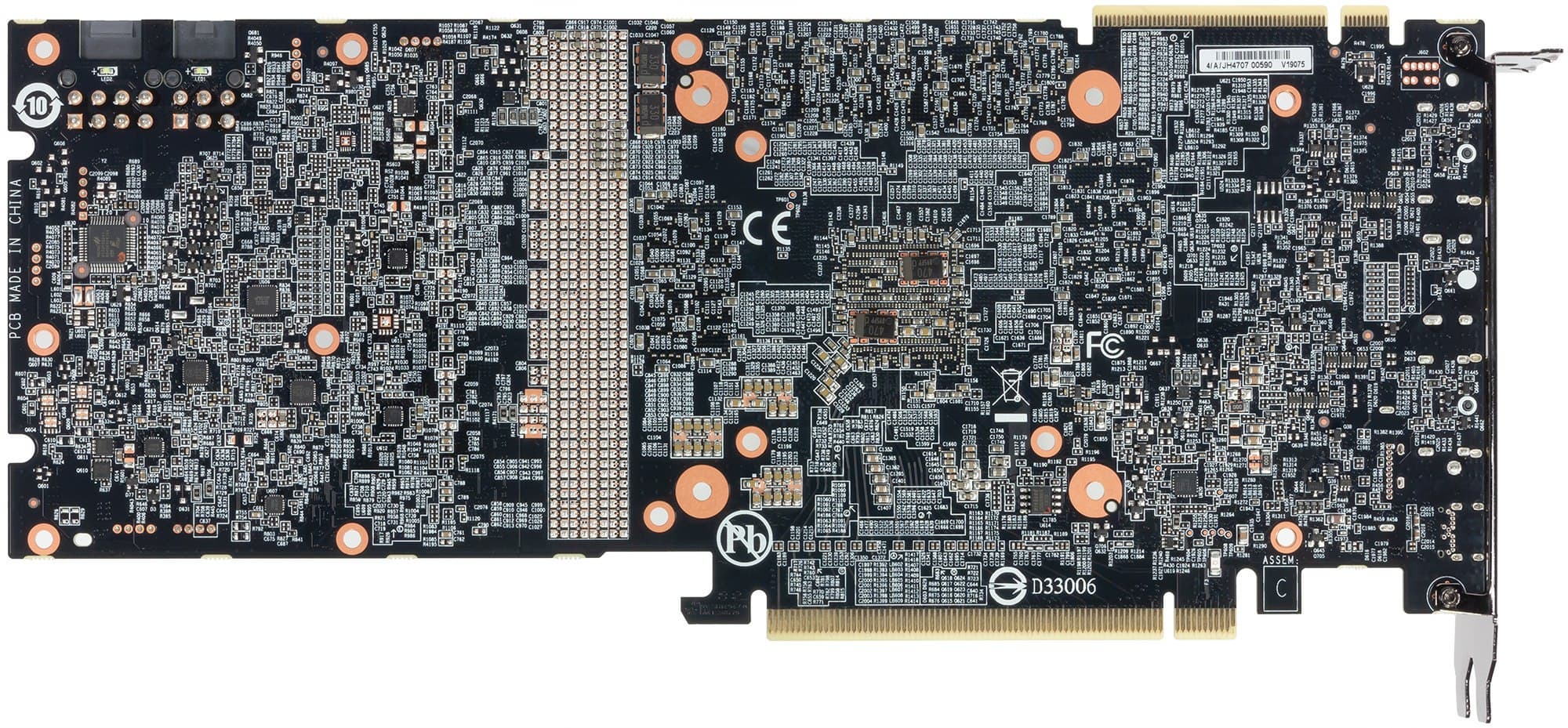 Схема питания построена на базе 8-фазного цифрового преобразователя iMon DrMOS. Эта динамическая система управления питанием способна осуществлять мониторинг тока чаще раза в миллисекунду, что дает жесткий контроль над поступающим на ядро питанием. Это помогает GPU дольше работать на повышенных частотах. Тот же преобразователь реализует 2-фазное питание микросхем памяти.