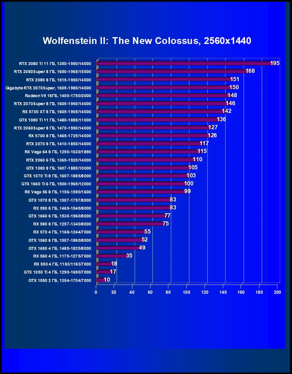 Рейтинг ускорителей iXBT.com демонстрирует нам функциональность видеокарт друг относительно друга и нормирован по самому слабому ускорителю — Radeon RX 550 (то есть сочетание скорости и функций RX 550 приняты за 100%). Рейтинги ведутся по 28 ежемесячно исследуемым нами акселераторам в рамках проекта Лучшая видеокарта месяца. Из общего списка выбирается группа карт для анализа, куда входят RTX 2070 Super и его конкуренты.