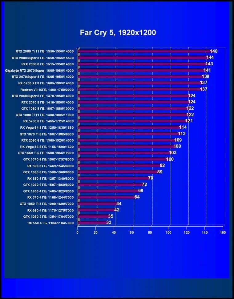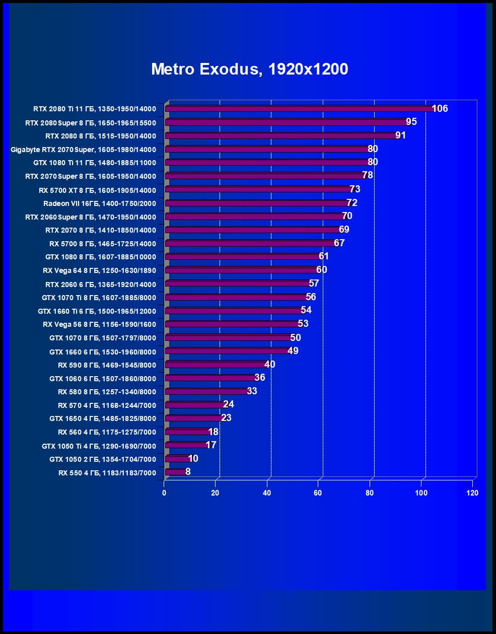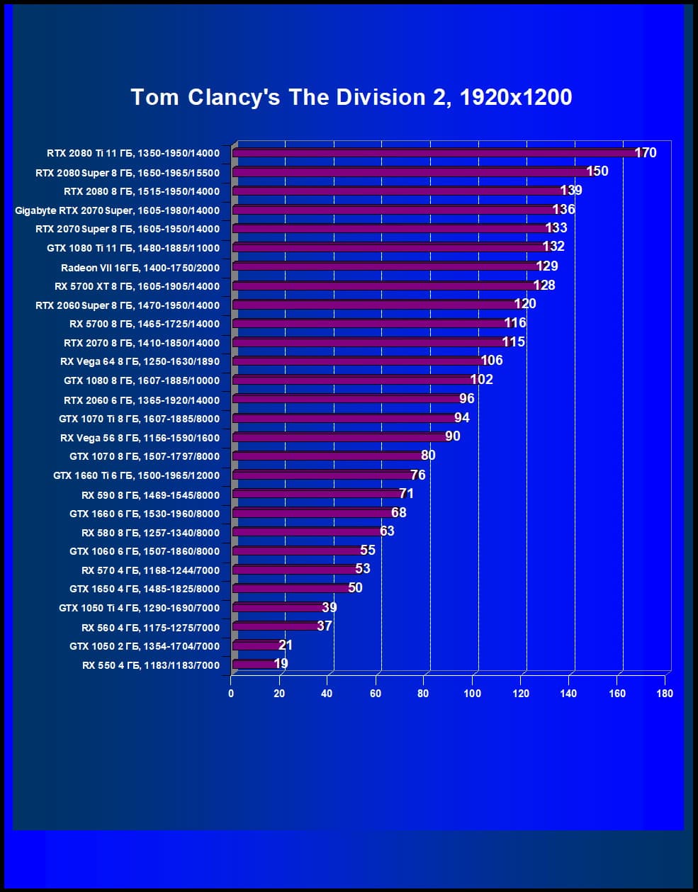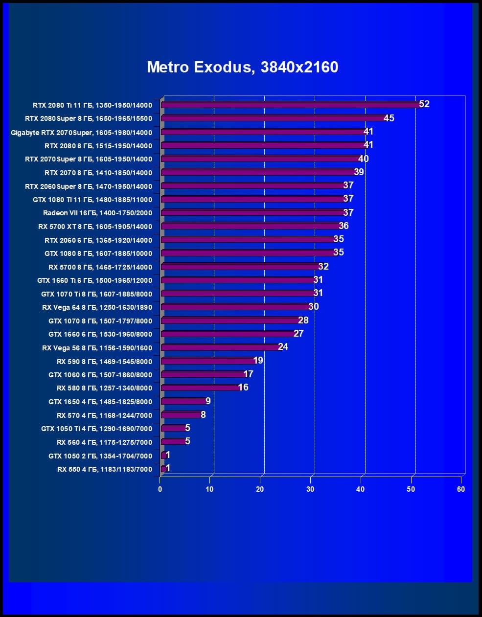 | 03 | RX 5700 XT 8 ГБ, 1605—1905/14000 | 236 | 778 | 33 000 |