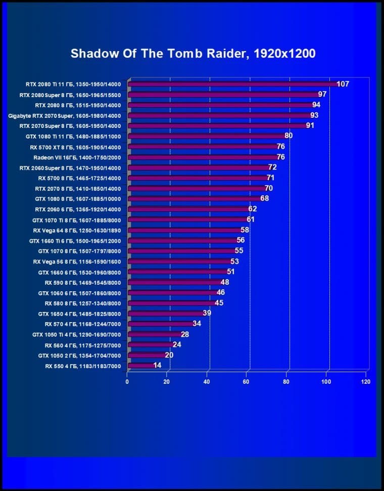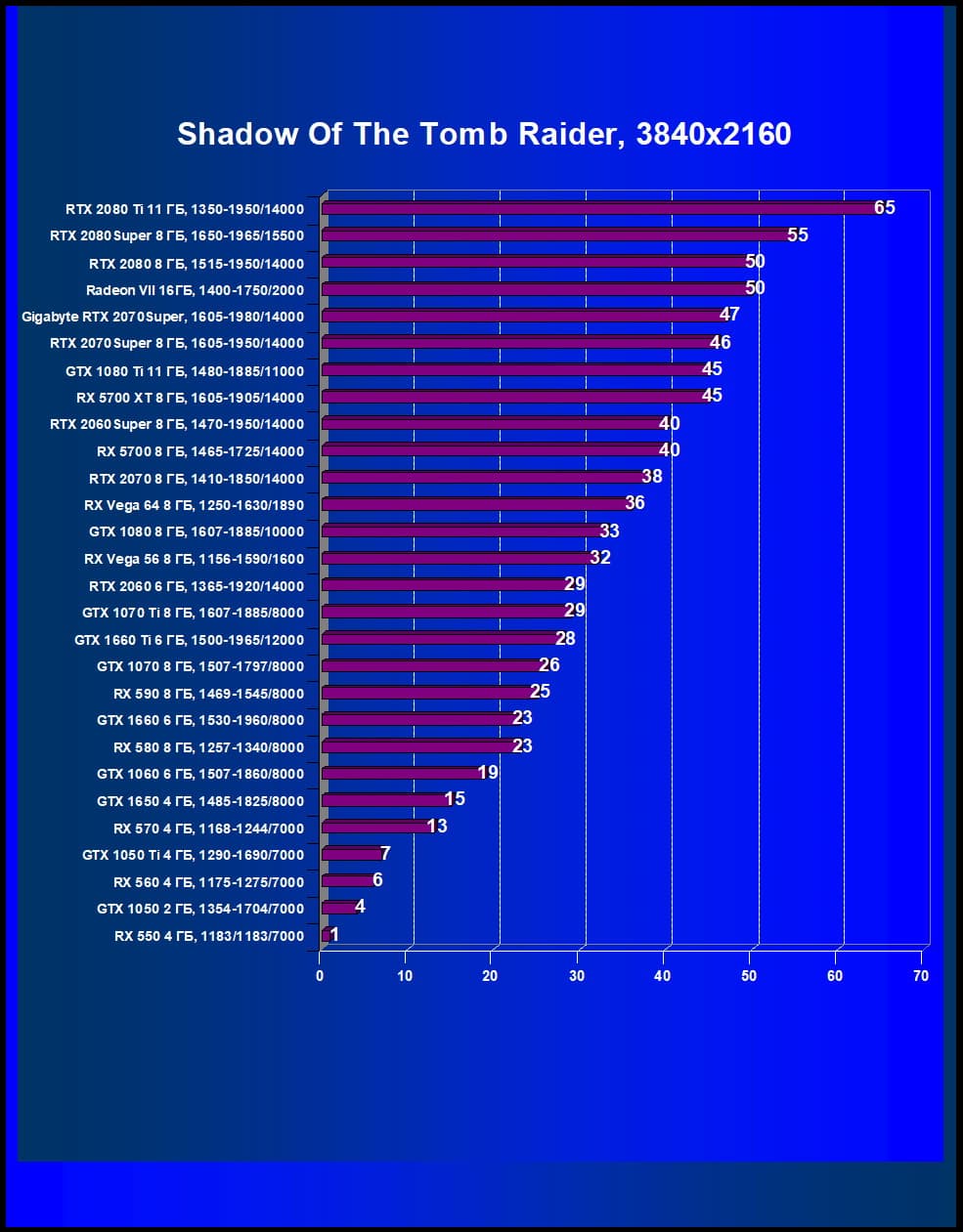 | 07 | Gigabyte GeForce RTX 2070 Super Gaming OC 8G (8 ГБ), 1605—1980/14000 | 221 | 884 | 40 000 |