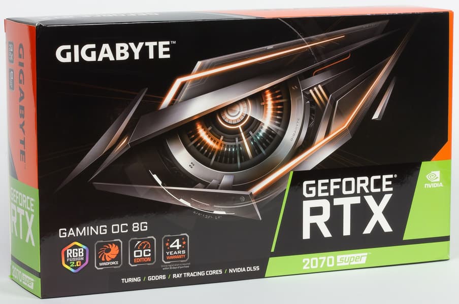 Gigabyte GeForce RTX 2070 Super Gaming OC 8G (8 ГБ) — отличный вариант GeForce RTX 2070 Super для тех, кому не особо нужны разгон и подсветка, а требуется простой и довольно тихий ускоритель современного уровня. Сам же GeForce RTX 2070 Super — один из лучших ускорителей с ценой в районе 35-40 тысяч рублей. Правда, на момент написания материала Radeon RX 5700 XT смотрелся выгоднее, однако на рынке при этом продавались только референс-карты AMD, а они ужасно шумные, так что лучше подождать выхода «партнерских» карт на том же RX 5700 ХТ или все же доплатить и взять GeForce RTX 2070 Super. Несмотря на относительно скромное позиционирование, рассмотренная карта Gigabyte имеет улучшенную систему питания, а также достаточно тихую и эффективную систему охлаждения, поэтому в принципе может быть приобретена и под небольшой разгон (фабричный разгон у нее чисто номинальный — +2% по производительности).