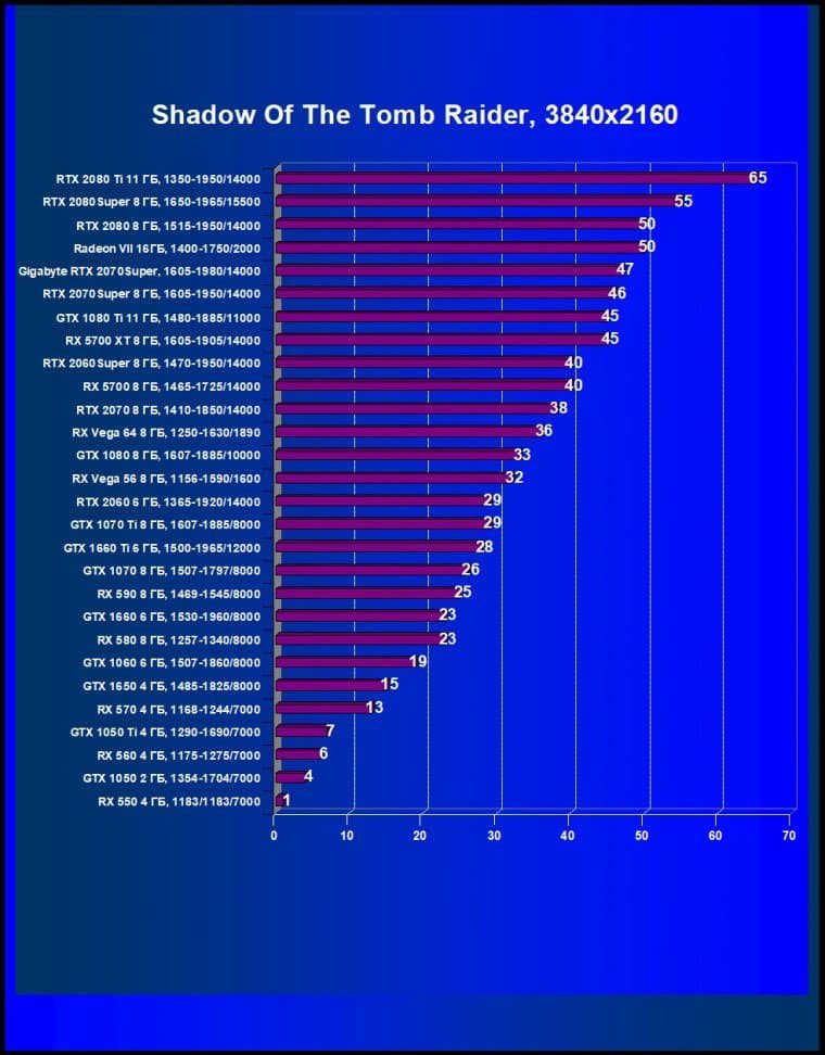 Наши многочисленные исследования показали, что Nvidia GeForce RTX 2070 тянет большинство игр при максимальных настройках качества в разрешениях до 2.5К включительно. Стоявший ранее на уровень выше GeForce RTX 2080 отлично чувствует себя в 2560×1440, а также может «замахнуться» на 4К при максимальном качестве графики в ряде игр, а «вклинившийся» между ними новый GeForce RTX 2070 Super также отлично подходит для разрешения 2.5К, но чтобы комфортно играть в 4К, во многих особо сложных по графике играх, возможно, придется ухудшить качество — либо вернуться в 2.5К ради сохранения максимального качества графики.