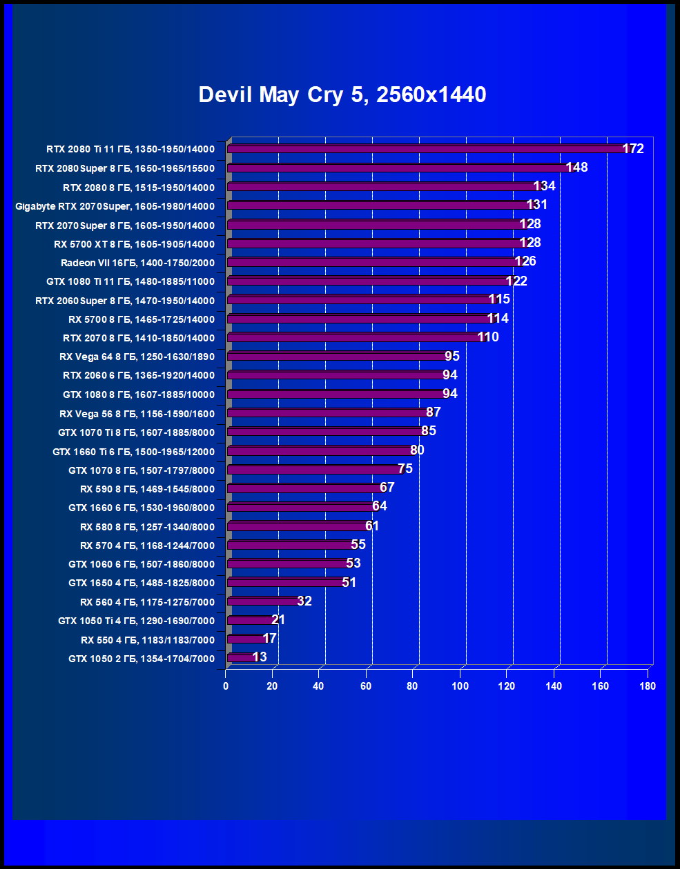 | 14 | Radeon VII 16 ГБ, 1400—1750/2000 | 159 | 809 | 51 000 |