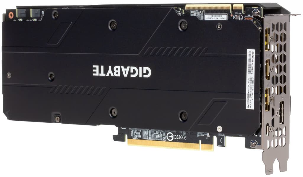 Частоты у карты Gigabyte повышены (в режиме OC) лишь относительно некоего референсного значения, а в реальности производительность практически равна варианту Nvidia Founder’s Edition (однако тот дороже). Что касается конкурентов, то с GTX 1080 сравнивать сложно, ибо ценовые категории у этих ускорителей пока разные, а ускорители уровнем выше (но из предыдущего поколения) GTX 1080 Ti и Radeon RX Vega 64 отстают.