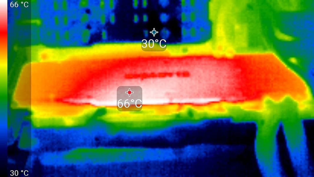 Максимальный нагрев — край с обратной стороны печатной платы.