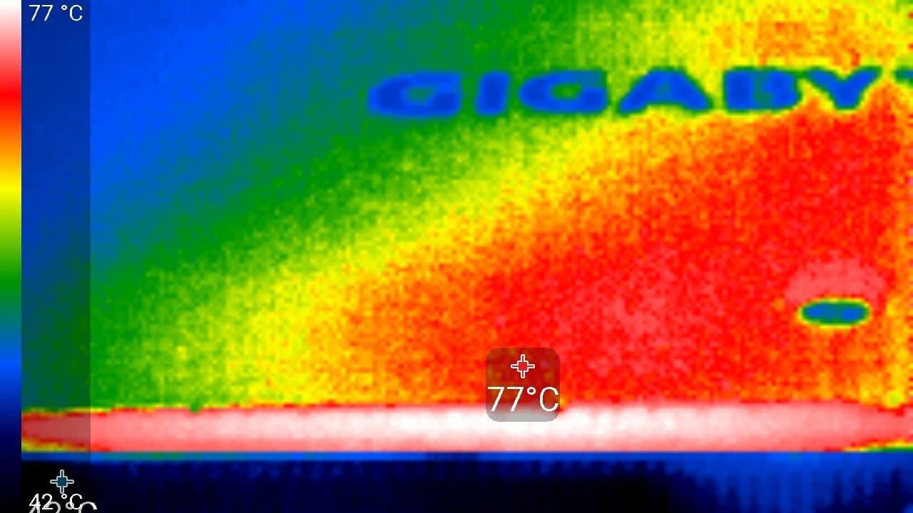 После 6-часового прогона под нагрузкой максимальная температура ядра не превысила 71 градус, что является отличным результатом для видеокарты такого уровня.