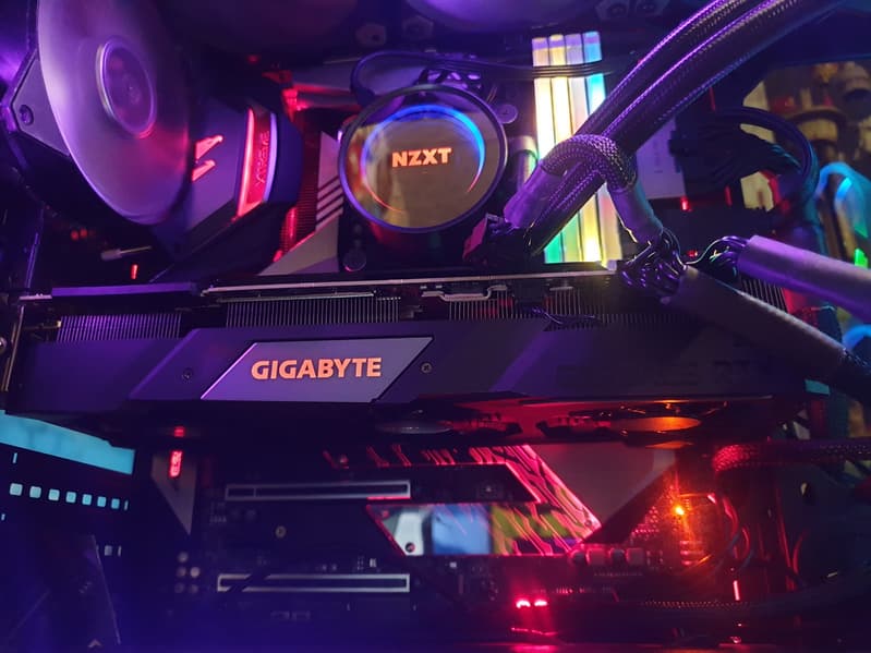 Gigabyte GeForce RTX 2080 Ti Gaming OC 11G (11 ГБ) — добротный вариант GeForce RTX 2080 Ti для тех, кому не нужны разгон и подсветка, а просто требуется самый мощный ускоритель. Несмотря на относительно скромное позиционирование (в отличие от моделей бренда Aorus, например), карта имеет точно такую же систему питания, как у Nvidia GeForce RTX 2080 Ti Founders Edition, и потому готова стабильно работать на штатных частотах, а может и обеспечить умеренный разгон (попробовал сам: до 2000 МГц по ядру разгоняется легко). Одной из особенностей Gigabyte GeForce RTX 2080 Ti Gaming OC 11G является эффективная, но и достаточно шумная система охлаждения, поэтому эта карта отлично подойдет тем, кто хочет погонять в сложные игры при высочайшем уровне графики, но при этом ставит системный блок под стол, благо подсветка у этой карты очень скромная, любоваться там уж точно нечем.