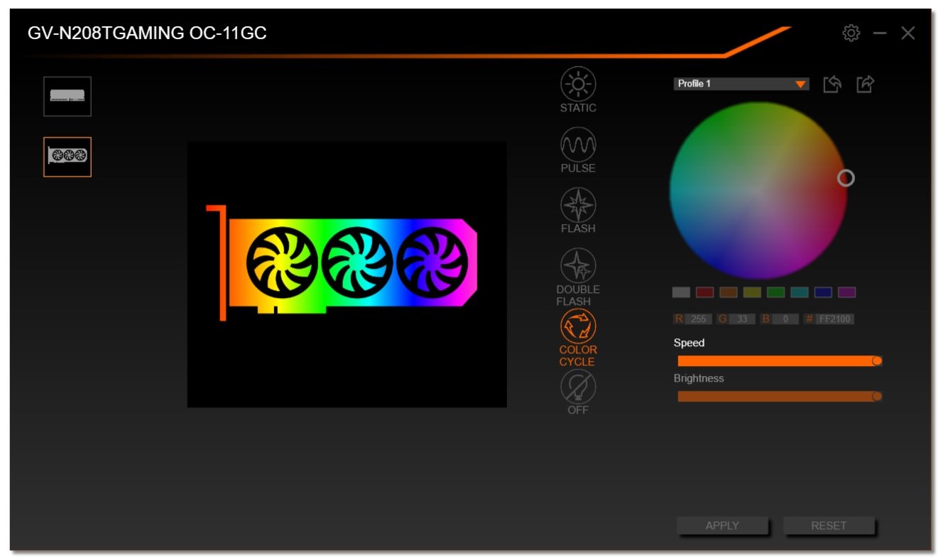 Рассматриваемый ускоритель изначально не оверклокерский (для этого у Gigabyte есть серия Aorus), его частота работы изначально повышена на 7,2% относительно референс-карты, что практически соответствует параметрам карты Nvidia Founders Edition, да и производительность у них совпала с точностью до единиц FPS. По сути, это копия той самой Nvidia GeForce RTX 2080 Ti Founders Edition.