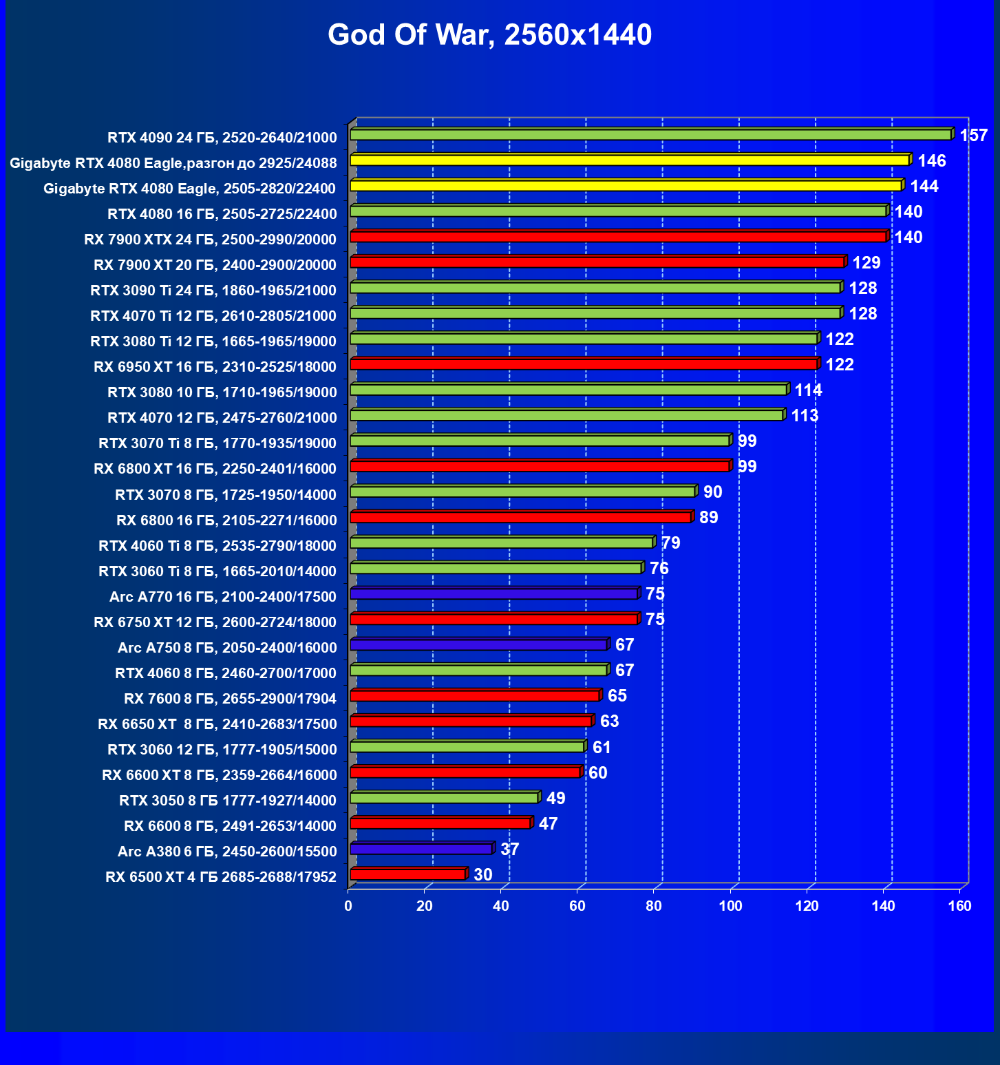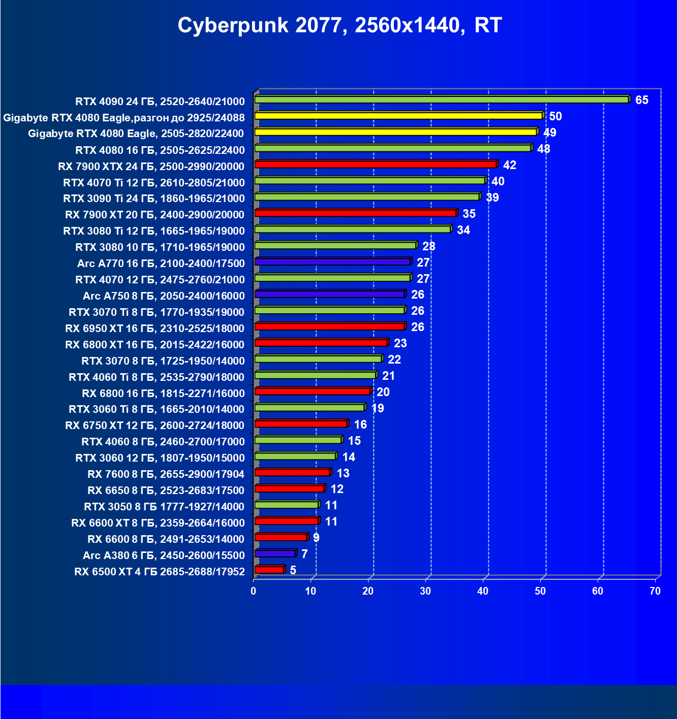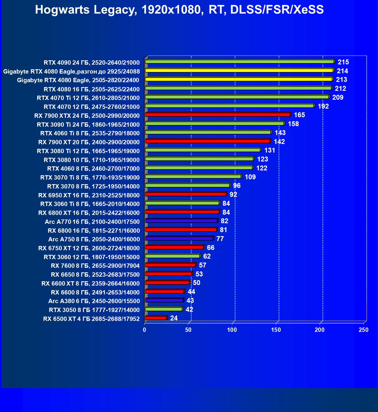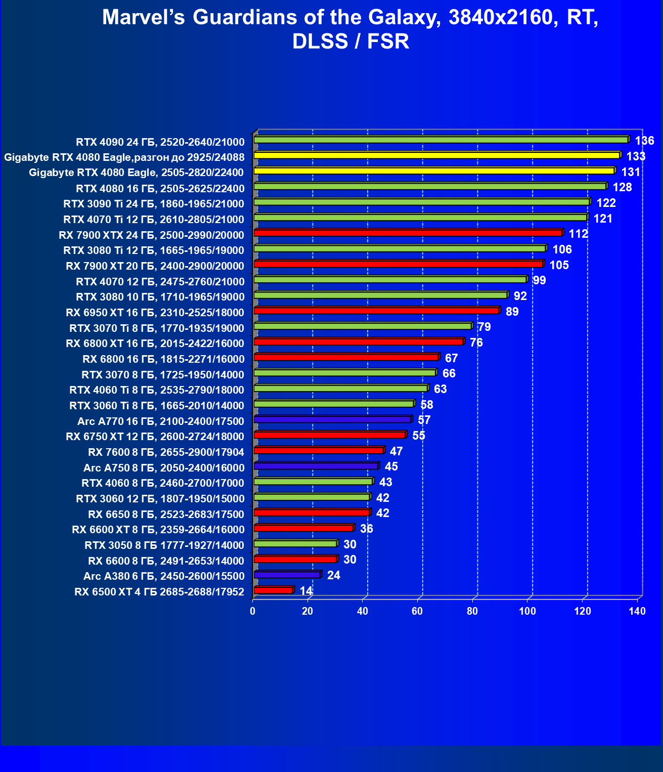 | 03 | Gigabyte RTX 4080 Eagle, 2505—2820/22400 | 1939 | 199 | 97 500 |