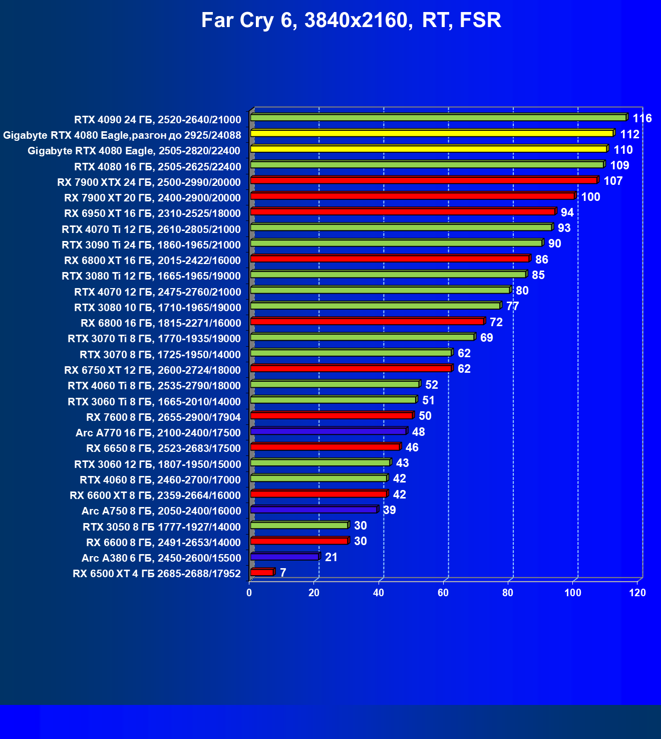 | 08 | RX 7900 XTX 24 ГБ, 2500—2990/20000 | 129 | 1224 | 95 000 |