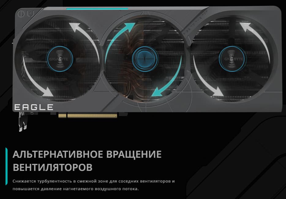 При этом распределение фаз такое: у Gigabyte GeForce RTX 4080 Eagle 16G — 14 фаз на ядро и 3 на микросхемы памяти, у карты Gigabyte GeForce RTX 4080 Gaming OC 16G (16 ГБ) — 18 + 3.