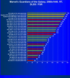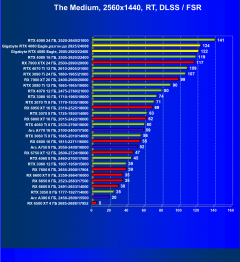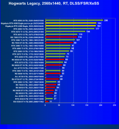 Результаты тестов со включенной аппаратной трассировкой лучей и/или DLSS/FSR/XeSS в разрешениях 1920×1080, 2560×1440 и 3840×2160