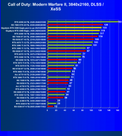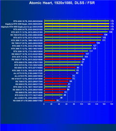 Рейтинг составлен по 9 тестам, в которых используется технология трассировки лучей и одновременно технология Nvidia DLSS, AMD FSR или Intel XeSS. Этот рейтинг нормирован по самому слабому ускорителю в данной группе — Radeon RX 6500 XT (то есть сочетание скорости и функций Radeon RX 6500 XT приняты за 100%).