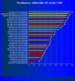 Но как только мы переходим к играм с RT и технологиями масштабирования, то RTX 4080, а конкретно карта Gigabyte, становятся лидерами в плане полезности приобретения (в своей ценовой группе).