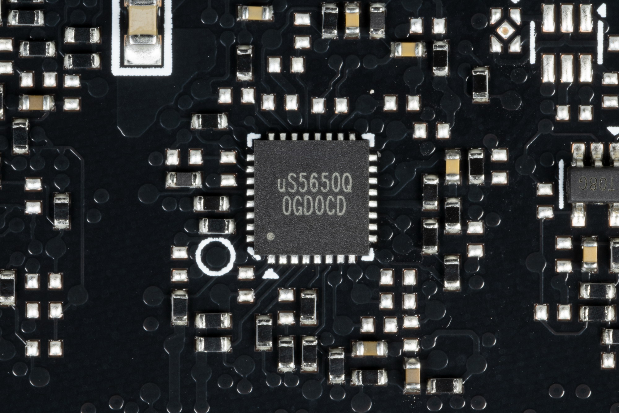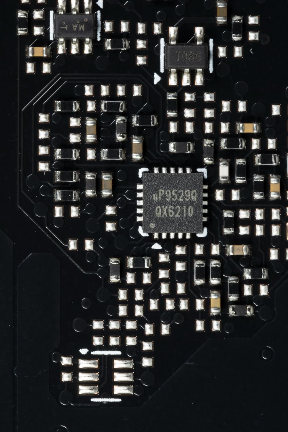 Также на тыльной стороне карты имеется контроллер uS5650Q (uPI Semi), который отвечает за мониторинг карты (отслеживание напряжений и температуры).