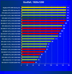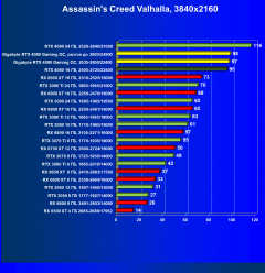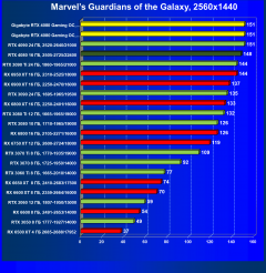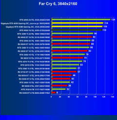 Я думаю, что диаграмма выше всё прекрасно демонстрирует: даже в разрешении 4K во многих играх общая производительность ограничивается уже не видеокартой, а другими компонентами системы, чаще всего упирается в возможности центрального процессора (даже Core i9-12900K не способен угнаться за GeForce RTX 4080). Что касается карты Gigabyte, то она еще чуть быстрее референс-аналога.