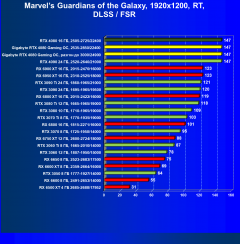 Результаты тестов со включенной аппаратной трассировкой лучей и/или DLSS/FSR в разрешениях 1920×1200, 2560×1440 и 3840×2160