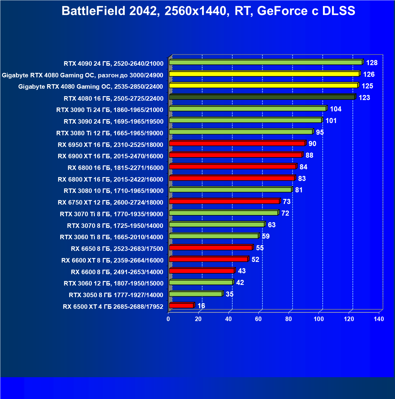 | 18 | RTX 4080 16 ГБ, 2505—2725/22400 | 119 | 1405 | 118 000 |