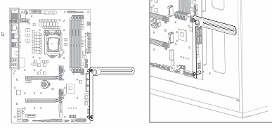 Подставка не привычная уже в виде штатива, и даже не в виде ранее использовавшегося многими партнерами Nvidia кронштейна-подпорки под карту. Это тоже кронштейн, но крепится он к стенке корпуса либо за пределами материнской платы (в случае модели форм-фактора ATX), либо над ней (в случае форм-фактора E-ATX), используя прилагаемый набор крепежа.