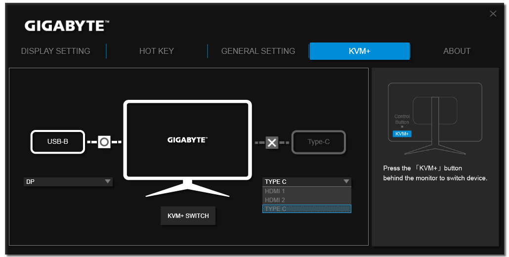 Есть встроенный концентратор USB (3.0) на два порта. Выходы USB поддерживают режим быстрой зарядки (BC 1.2). В наличие также не часто встречающаяся в мониторах функция KVM — к монитору по USB можно подключить клавиатуру и мышь (а можно и накопитель), чтобы затем их использовать с двумя источниками видеосигнала, например, с ПК и ноутбуком, или с ПК и планшетом. При этом один из источников должен быть подключен по USB-C (ввод видеосигнала по этому же интерфейсу, или по DisplayPort, или по HDMI), а второй — по USB через разъем USB-B (ввод видеосигнала или по DisplayPort, или по HDMI). На задней панели есть отдельная механическая кнопка для переключения между источниками, также ее могут заменить пункт в быстром меню монитора и кнопка в приложении OSD Sidekick. Еще как KVM-переключатель работает и просто выбор входа. Переключаются не только клавиатура и мышь, но и, например, флешка, подключенная к монитору через разъем USB-А.