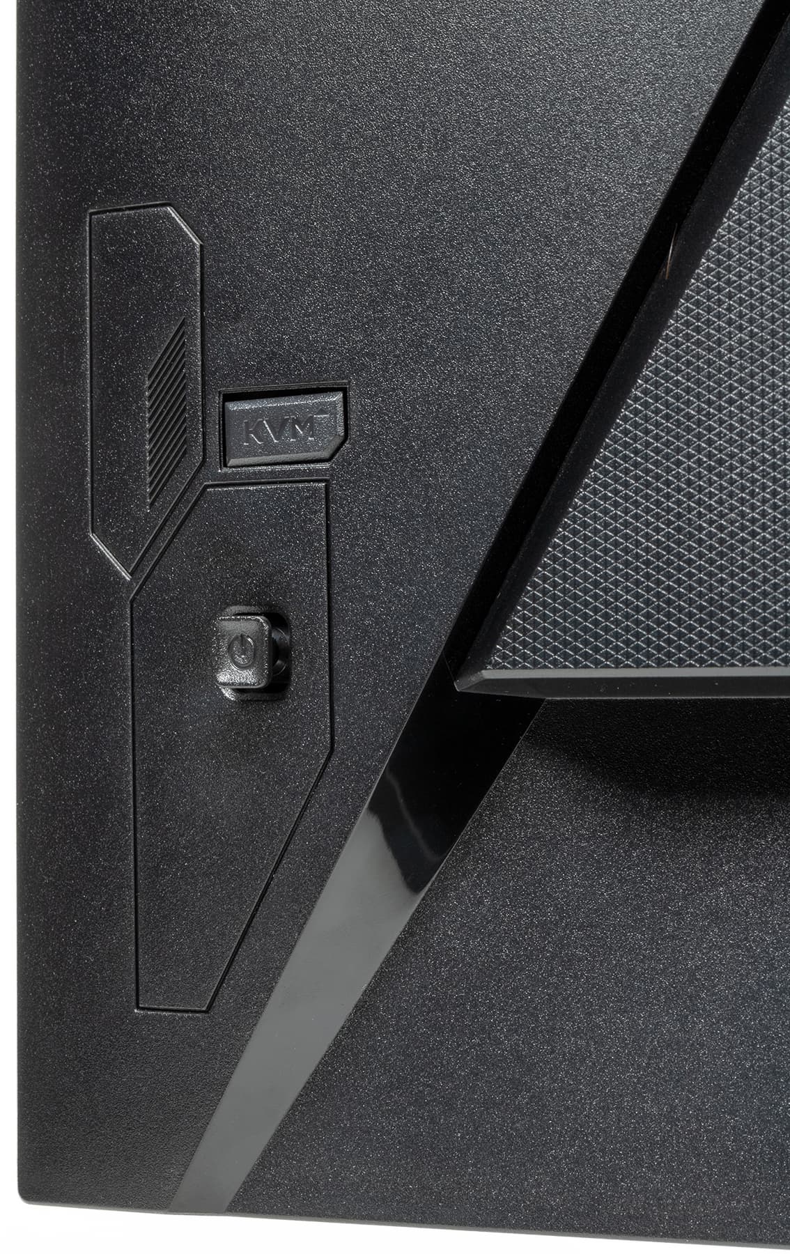На задней панели близко к краю под правую руку находятся кнопка KVM и удобный 5-позиционный джойстик (отклонение по четырем направлениям и нажатие).