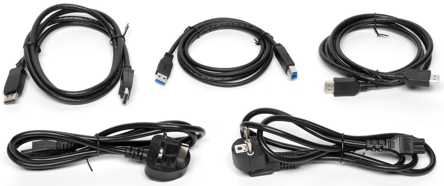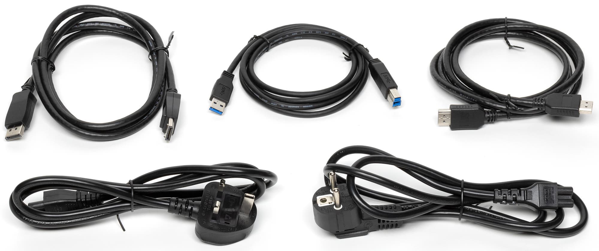 К монитору прилагается неплохой комплект кабелей (но не очень длинных) черного цвета.