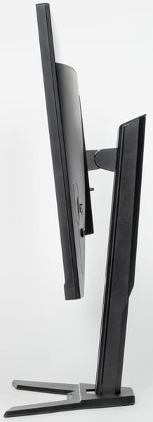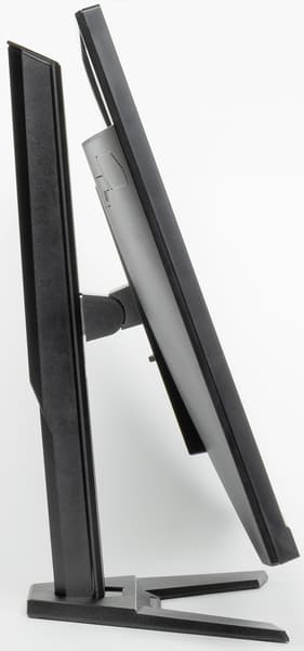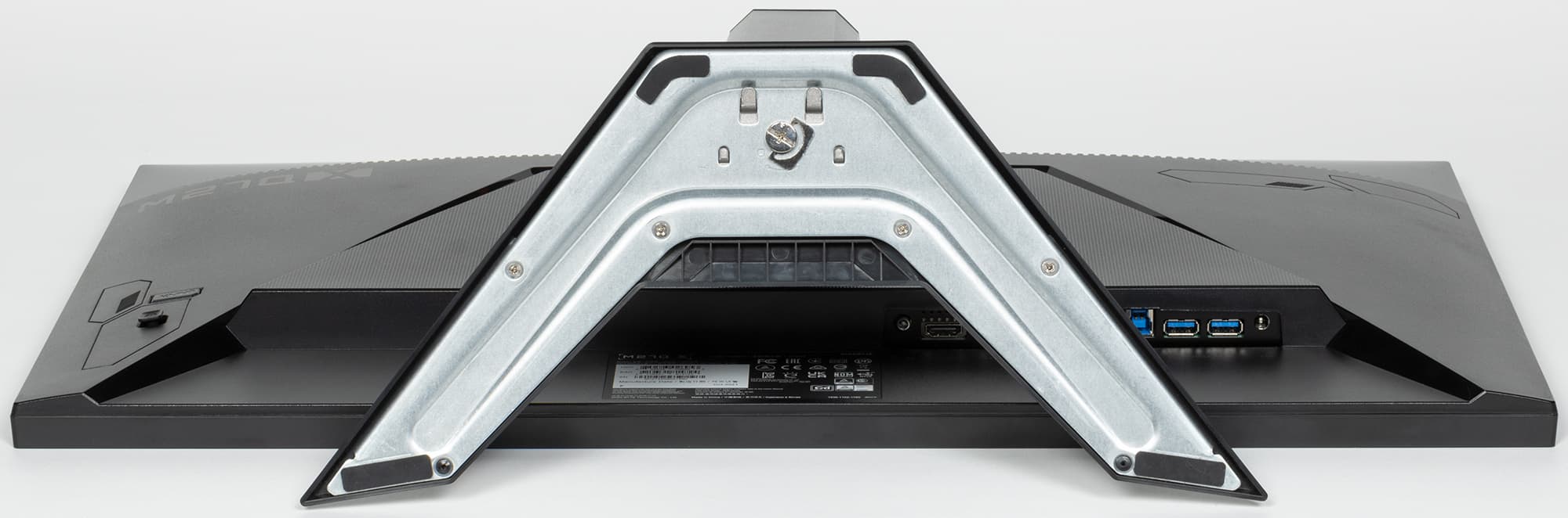 Несущие элементы подставки изготовлены из толстой штампованной стали и алюминиевого сплава. Лапы основания подставки расходятся широко в стороны, что обеспечивает монитору хорошую устойчивость, при этом сверху на горизонтальную поверхность основания можно положить край клавиатуры. Резиновые накладки снизу на опорных плоскостях основания подставки защищают поверхность стола от царапин и предотвращают скольжение монитора на гладких поверхностях.