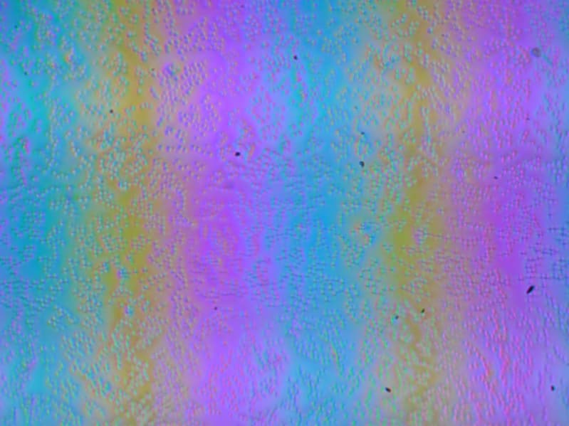 Зерно этих дефектов в несколько раз меньше размеров субпикселей (масштаб этих двух фотографий одинаковый), поэтому фокусировка на микродефектах и «перескок» фокуса по субпикселям при изменении угла зрения выражены слабо, из-за этого нет и «кристаллического» эффекта.