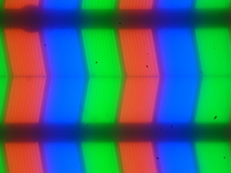 Изображение структуры пикселей из-за матовой поверхности слегка размыто, но характерную для IPS структуру распознать можно (черные точки — это пыль на матрице фотоаппарата):