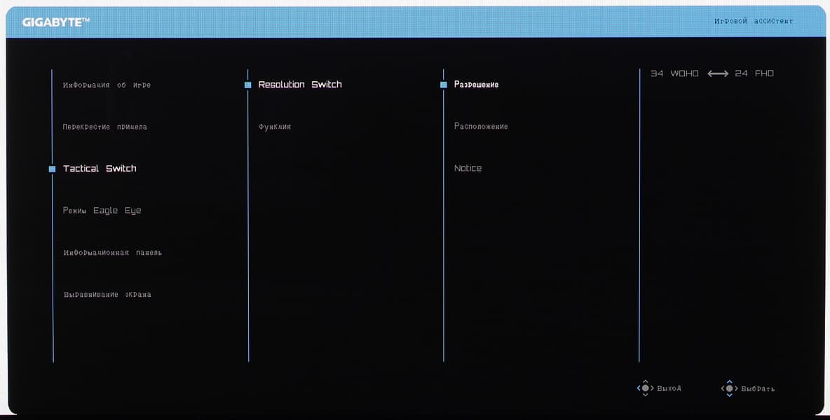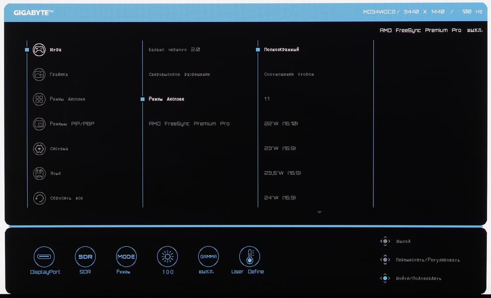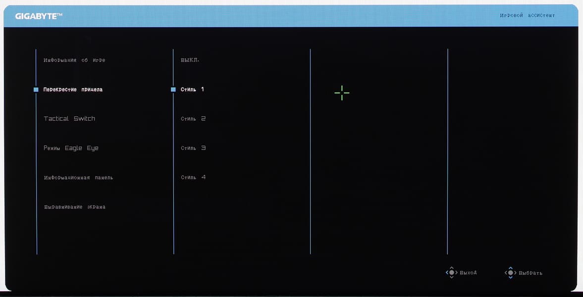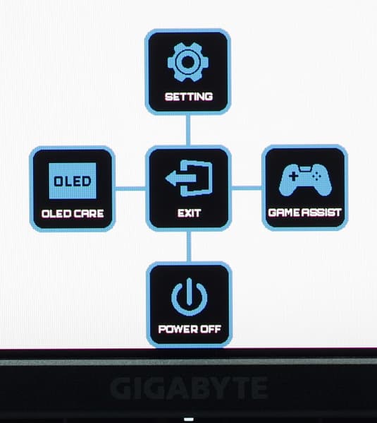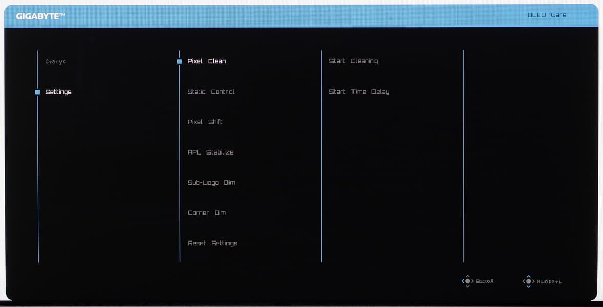 Если на экране оно, то нажатие на джойстик — выход из меню, отклонение вниз — выключение монитора, вверх — вход в основное меню установок, вправо — меню с настройками игровых функций, влево — функции OLED Care.