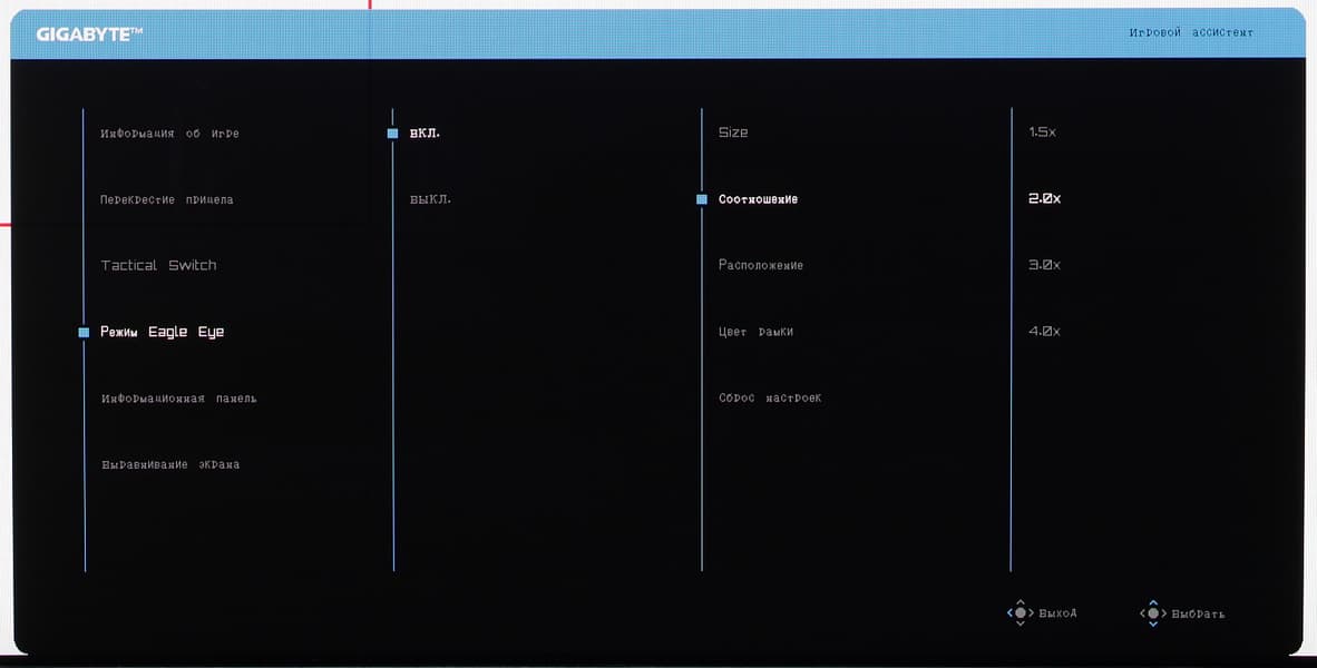 Также можно выбрать функцию, назначенную на нажатие тактической кнопки, и включить функцию увеличения центральной области экрана (Eagle Eye — орлиного глаза) — вывод прямоугольной области с увеличением для лучшего прицеливания.