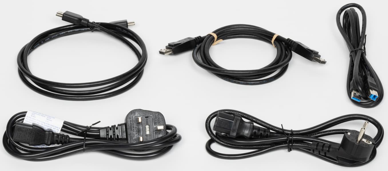 К монитору прилагается неплохой комплект кабелей (но не очень длинных) черного цвета.